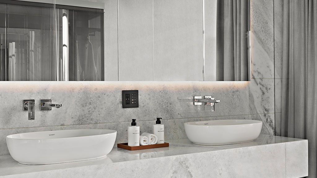 958 sq ft An impressive suite, filled with natural light and floor-to-ceiling windows that create a sense of limitless space, with 180º views in this corner location. Each suites features Poltrona Frau furniture, Rimadesio closets, Open living and dining area, King-size bed, Floor-to-ceiling windows, Bang & Olufsen speakers, Lutron Lighting control system, Nespresso coffee maker, Byredo bath & shower amenities, Complimentary minibar, Dyson hairdryer, 600-thread count linens.