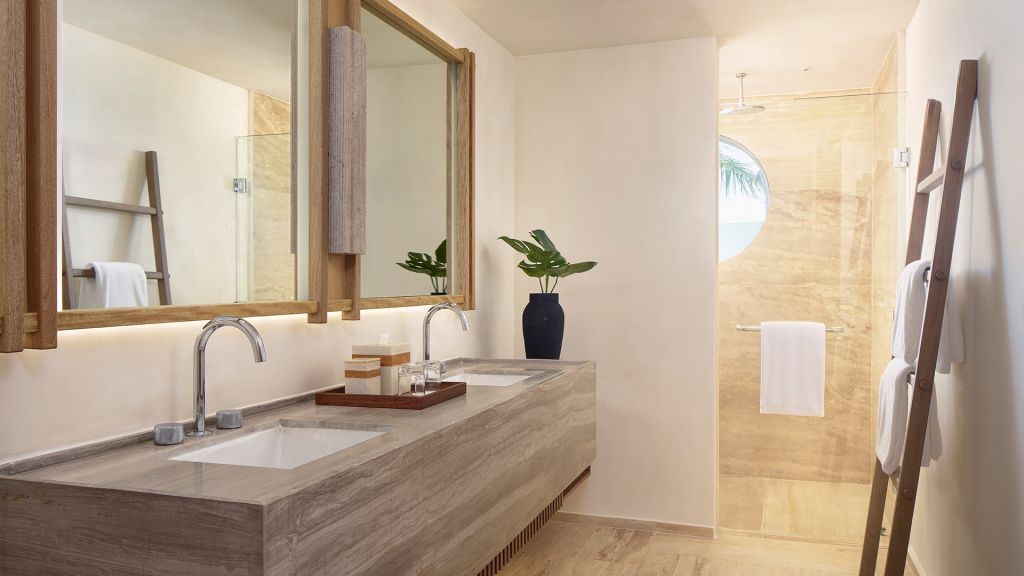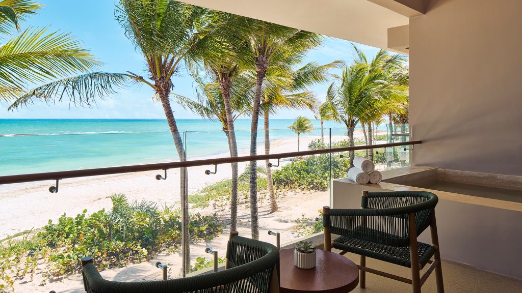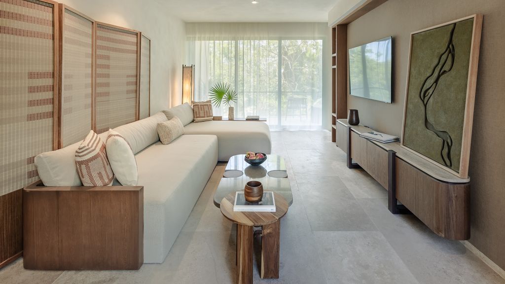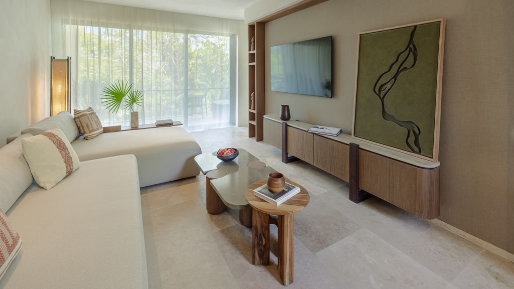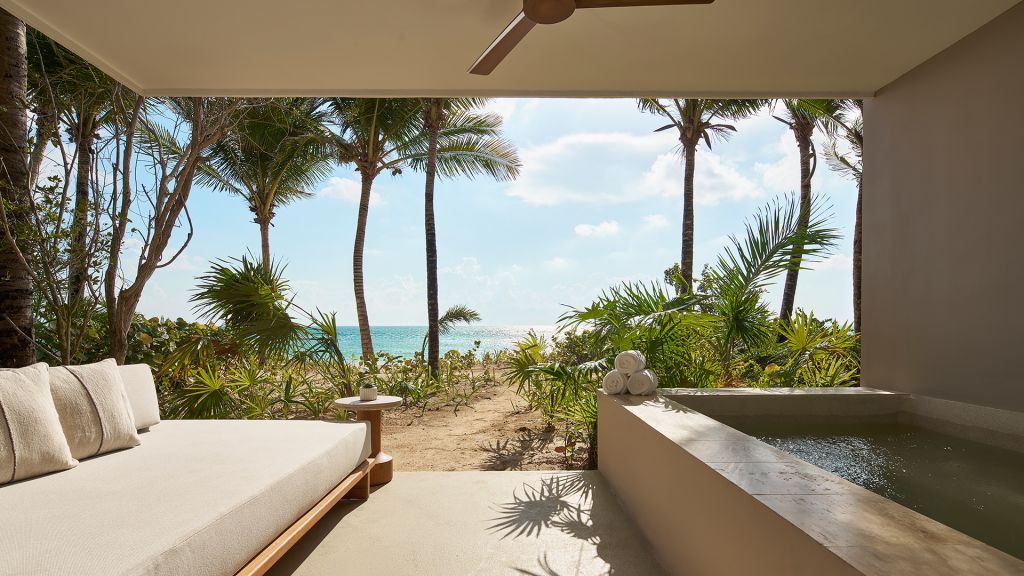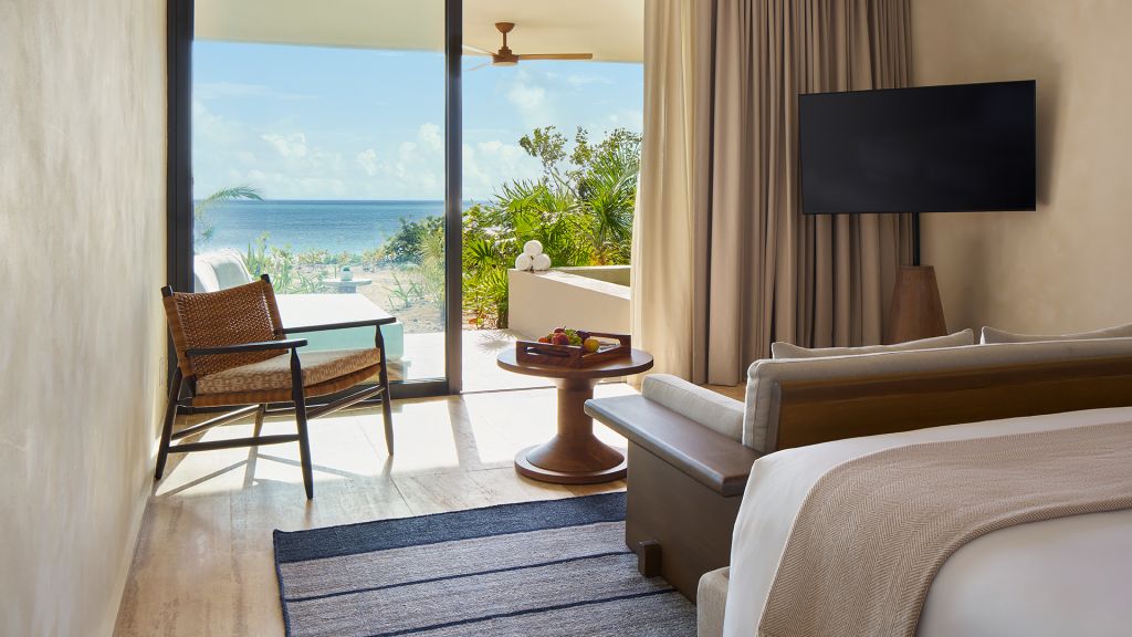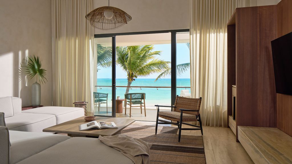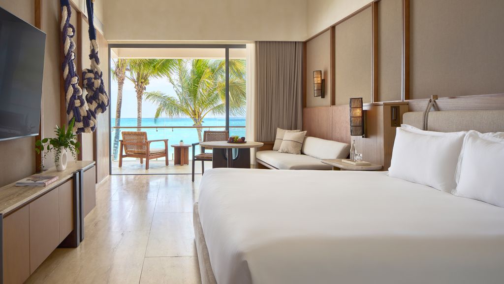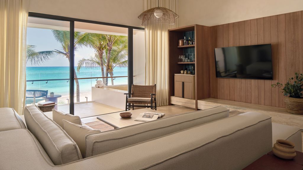 Embrace views of the Caribbean from your beachfront studio offering an indulgent plunge pool on a private balcony or small terrace. Inside, this 710-square-foot space is furnished with a plush king bed, a luxe bathroom with a rainfall shower and an expansive lounge space for sinking into the Mayakoba vibe.