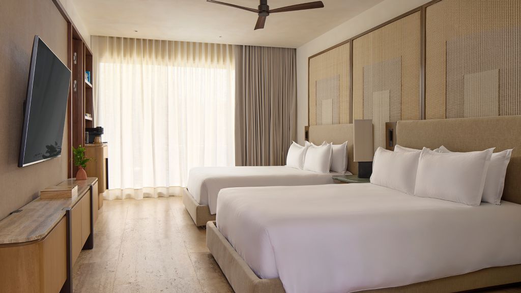 Live the good life just two minutes from the beach in your 538-square-foot room, complete with two double beds, a rainfall shower, views of the lagoon, mangrove, garden or golf course, and all the comforting amenities you’ll need.