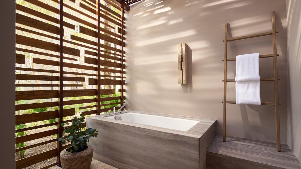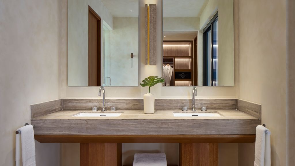 Find peace in your spacious 1,107-square-foot suite, complete with a plunge pool and private balcony, a relaxing rainfall shower, a grand king bed, a separate living area and views of the lagoon, mangrove, golf course or garden.