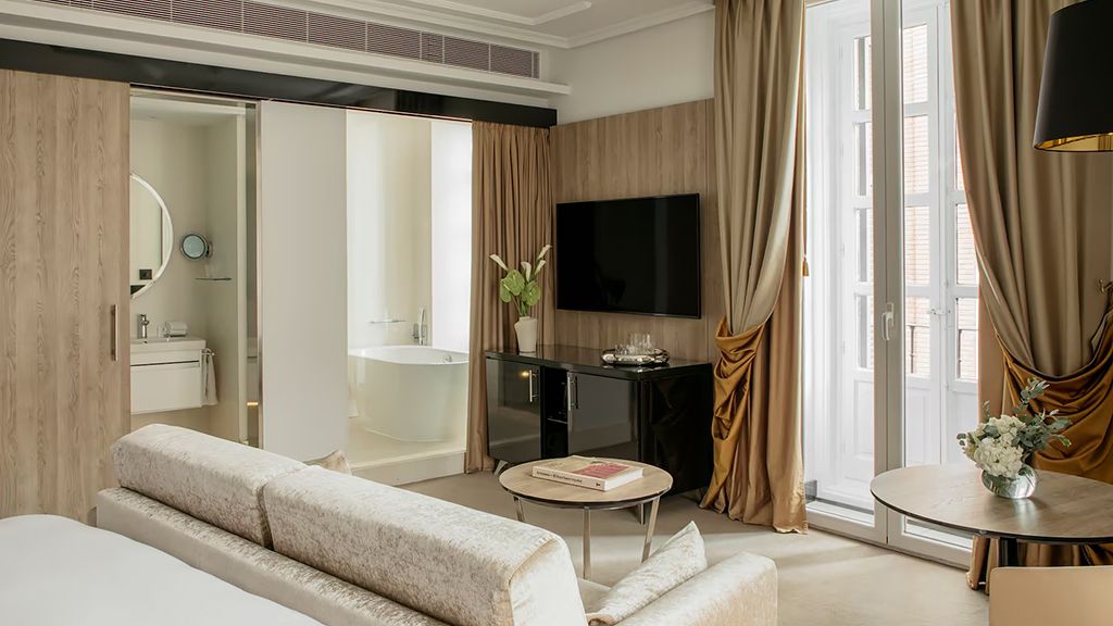 A room with an elegant design and classic decoration, accompanied by the latest technology and features to guarantee your comfort. Perfect for after a long day exploring madrid. With a magnificent king-size bed, a minimalist bathroom and large windows