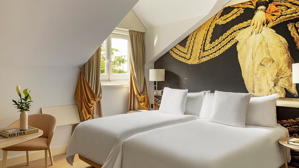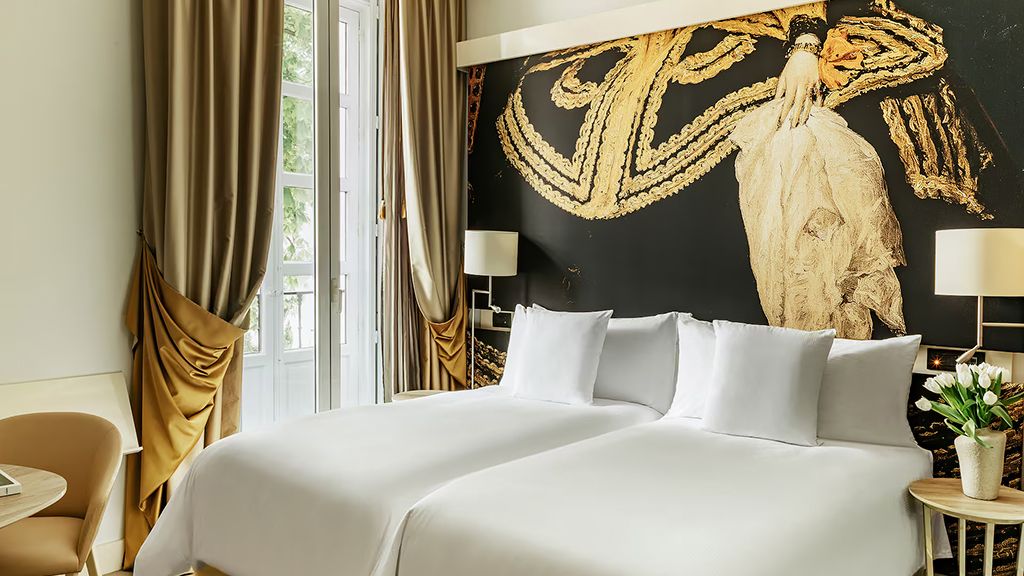 A room decorated in velvet and hardwood, ideal for resting after a busy day in madrid. It consists of a king-size bed, a comfortable desk and a bathroom. Simplicity and comfort help ensure an unforgettable stay in the capital.