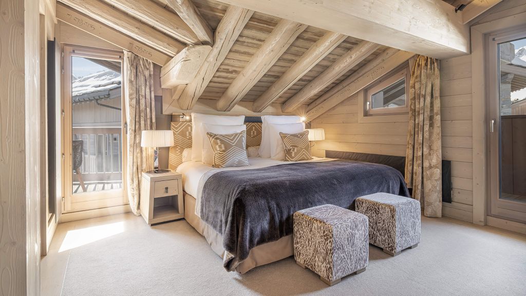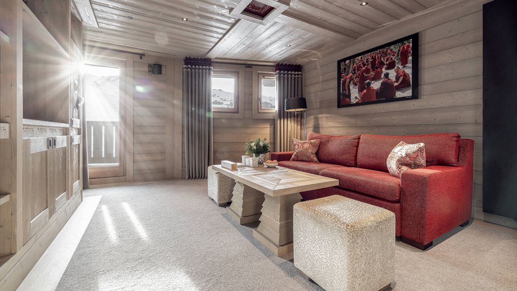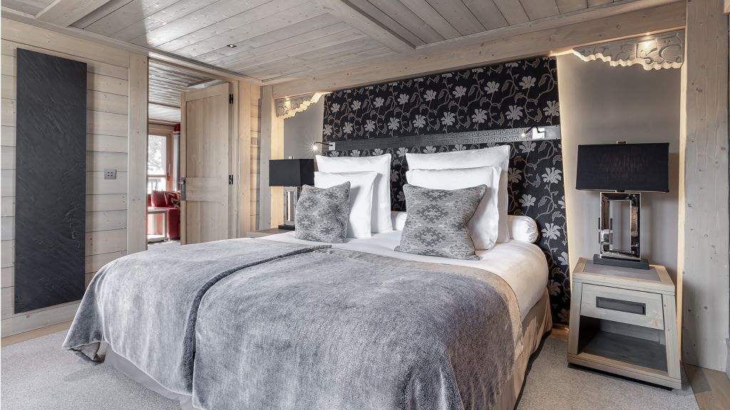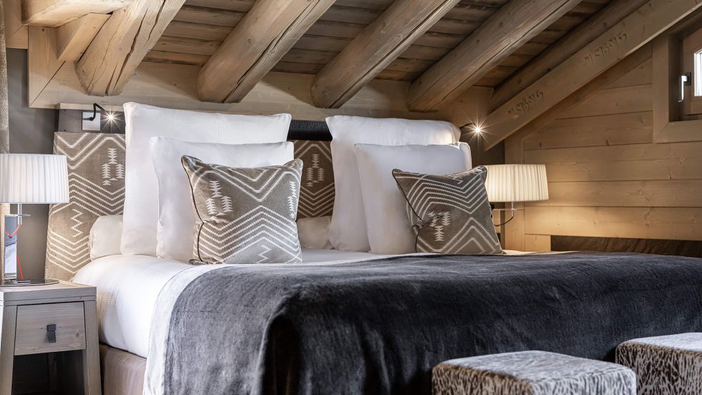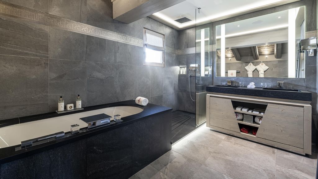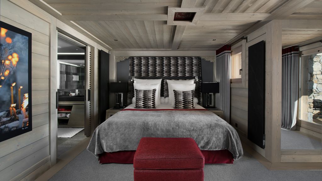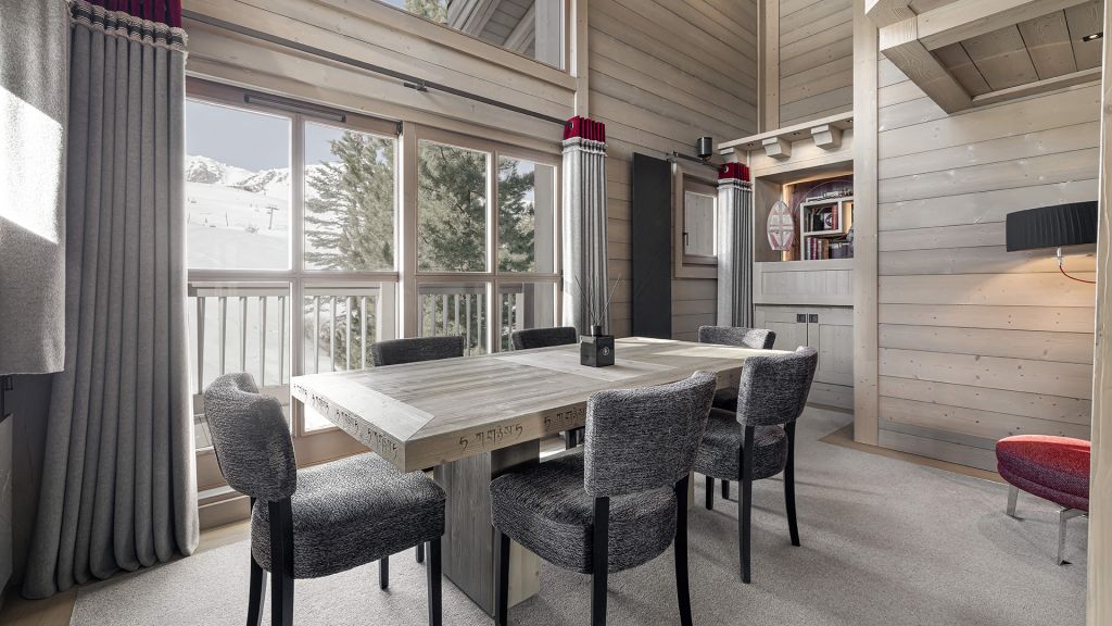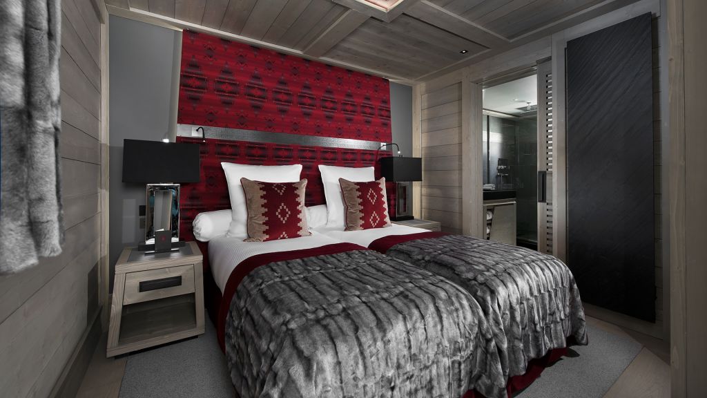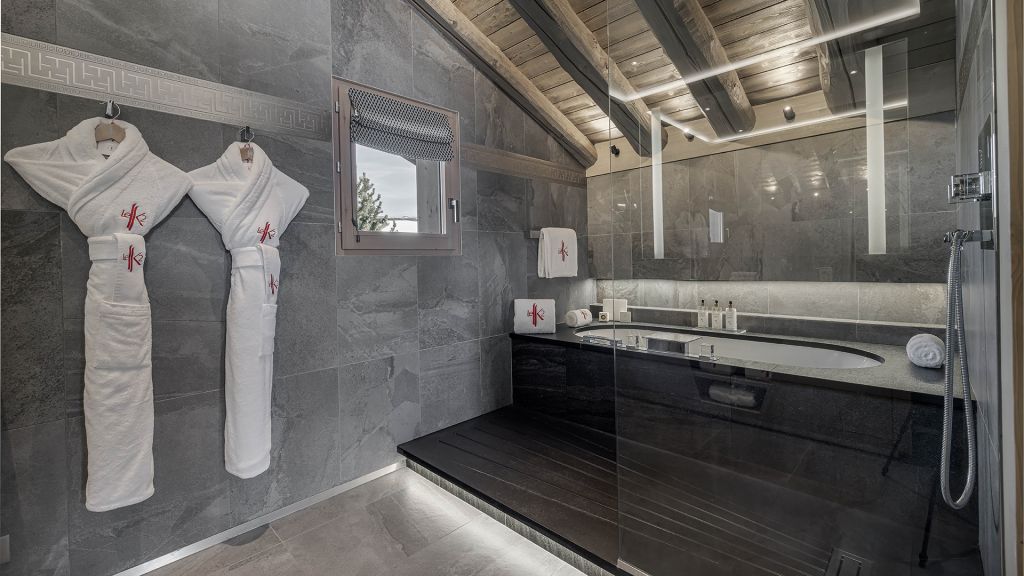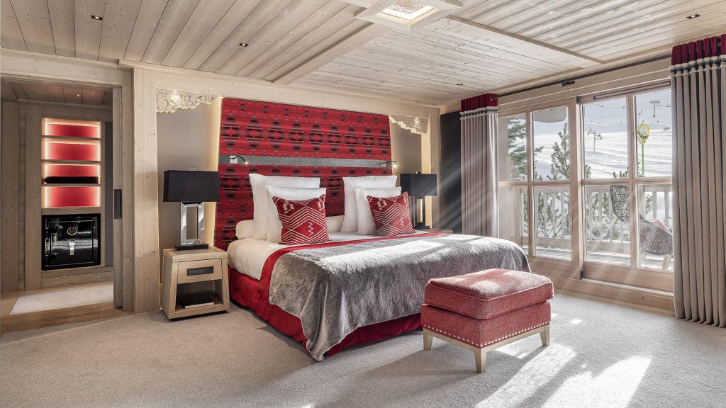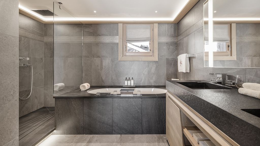 These 62 sqm suites are designed for guests seeking space and elegance. A separate bedroom features a king-size bed (convertible into twin beds), and the lounge includes a sofa, armchairs, coffee table and desk. The large bathroom is equipped with a walk-in shower and bathtub. Each suite benefits from ample storage, including a generous wardrobe or dressing area. A balcony opens onto unobstructed views of the slopes or surrounding mountains. Apple tv and a sonos sound system ensure refined entertainment.