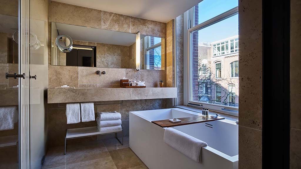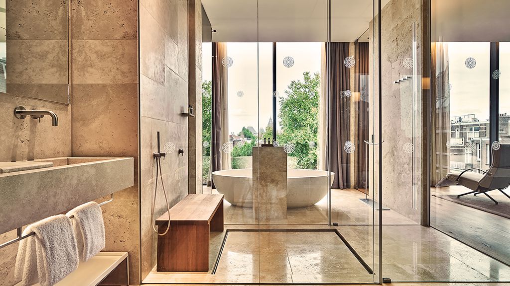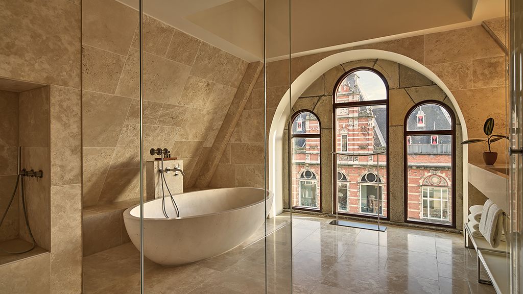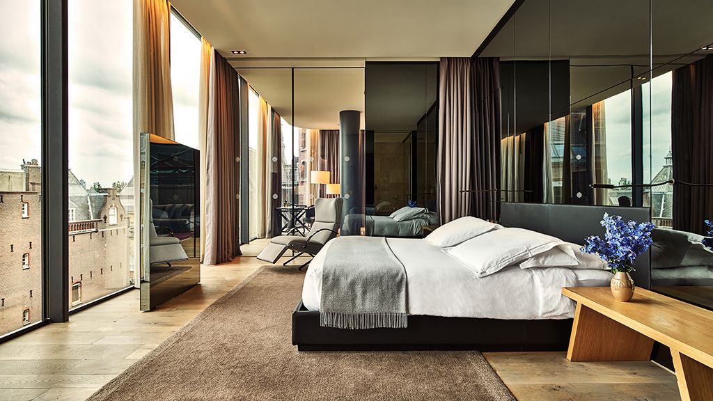 Positioned on the hotel's corners, these spacious suites feature high ceilings, an open-plan living area, a luxurious bathroom and expansive views over amsterdam.