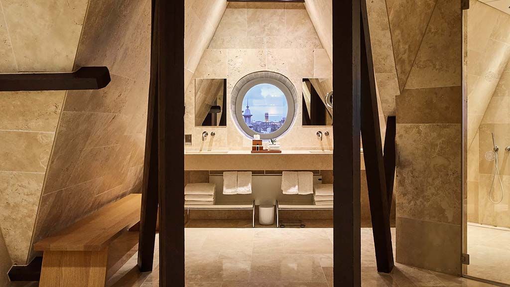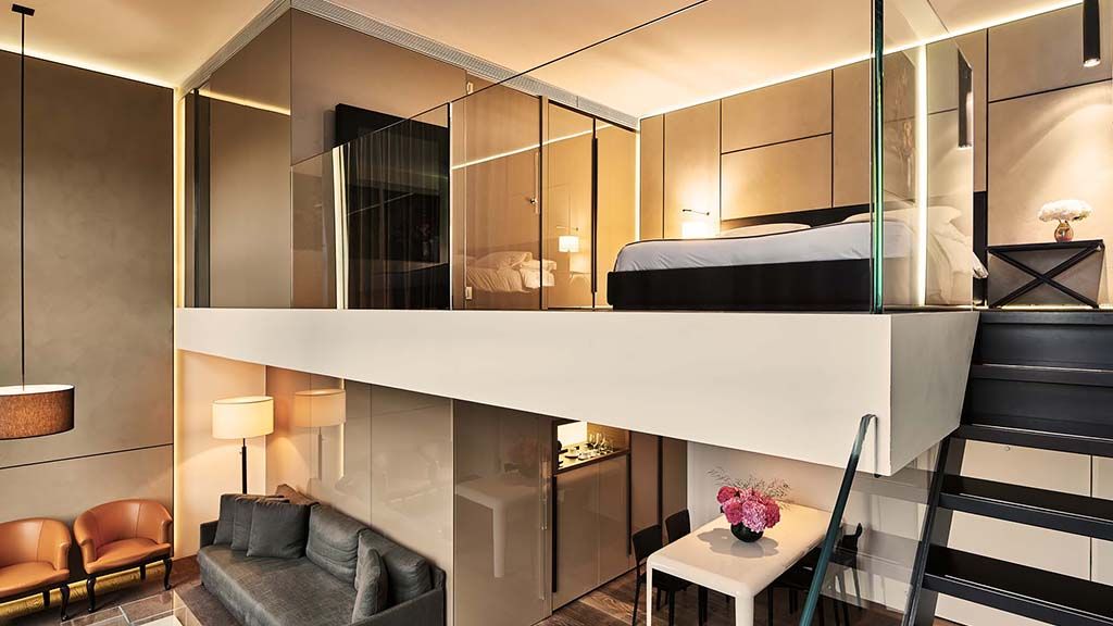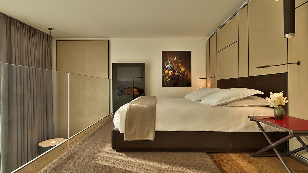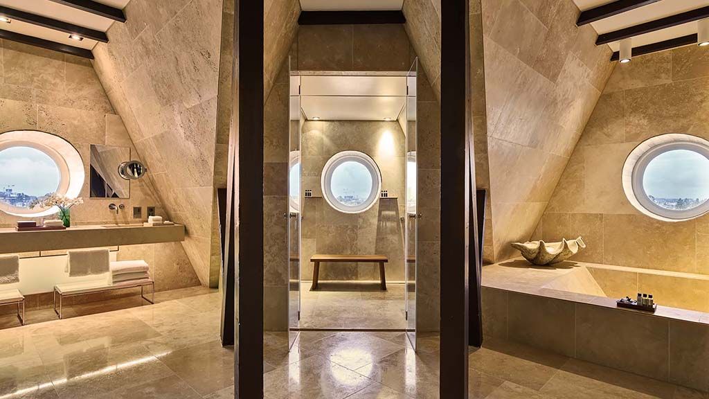 The largest suite at the hotel features wraparound floor-to-ceiling windows, a spacious living room, large bedroom, luxurious bathroom and exclusive lift landing. It can be combined with six additional bedrooms.