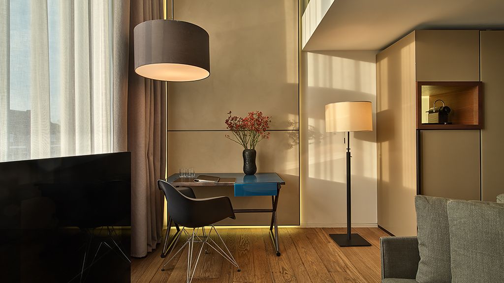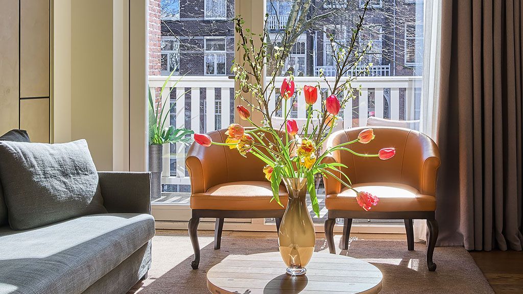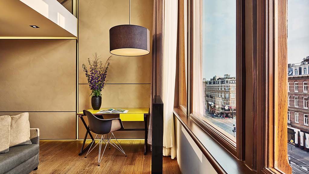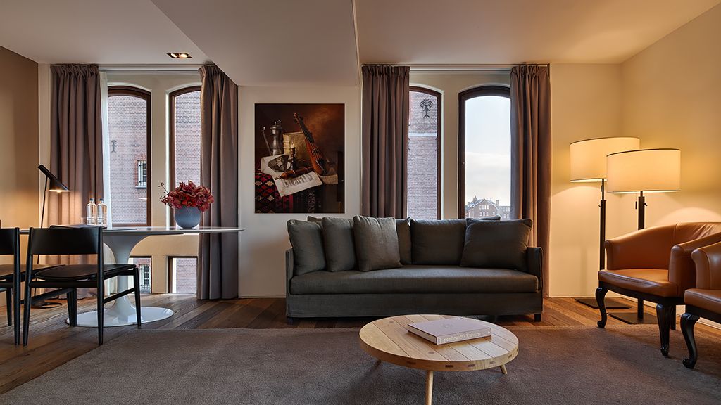 Designed like an elegant amsterdam apartment, these one-bedroom suites offer a living room, workspace and tranquil street views.