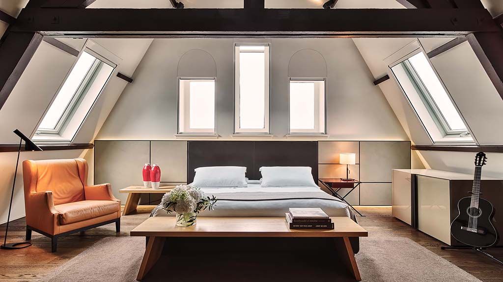 This exceptional triplex suite features a spectacular rooftop terrace with sweeping views of amsterdam. Elegantly designed, it provides a luxurious living experience in the heart of the city.