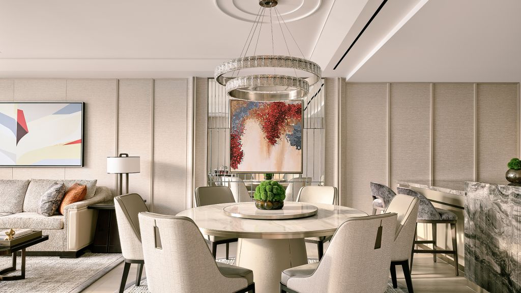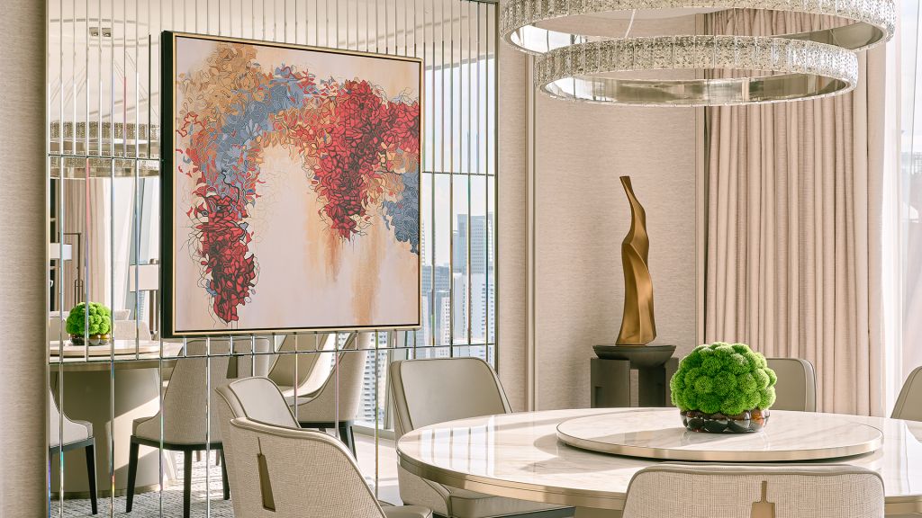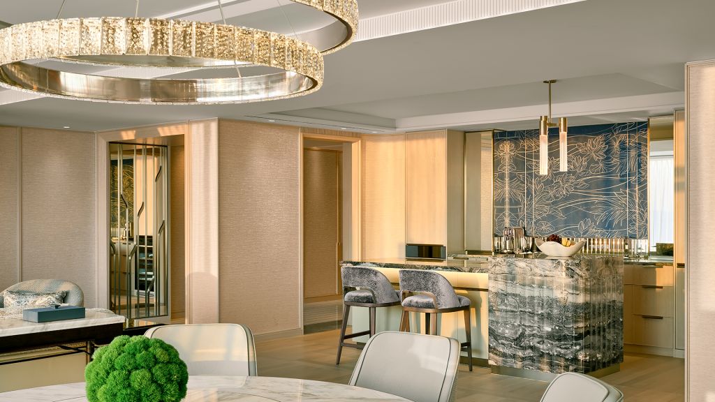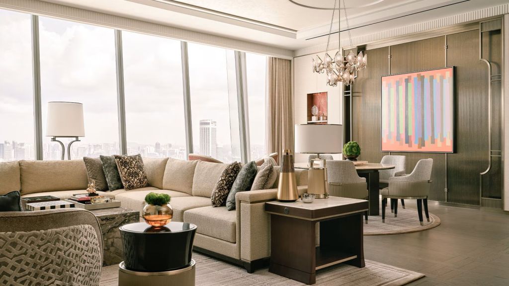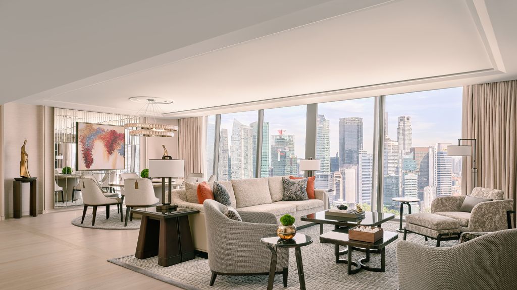 Let loose fully and recharge deeply in your opulent residential-style suite, a sliver of calm and serenity above the bustle of the city. Lounge in the elegant and expansive living and dining area, immaculately designed for intimate conversations and moments worth lingering in. Exclusive Privileges: (1) *Complimentary daily breakfast buffet at The Club or RISE Restaurant or breakfast set menu at Spago Bar & Lounge (2) *Complimentary Afternoon Tea at RISE Restaurant (3) *Complimentary Aperitif Hour at selected bars and restaurants (4) Complimentary 1-way arrival limousine transfer *Included for adults only; additional charges applicable for children aged 6 to 12 years old.
