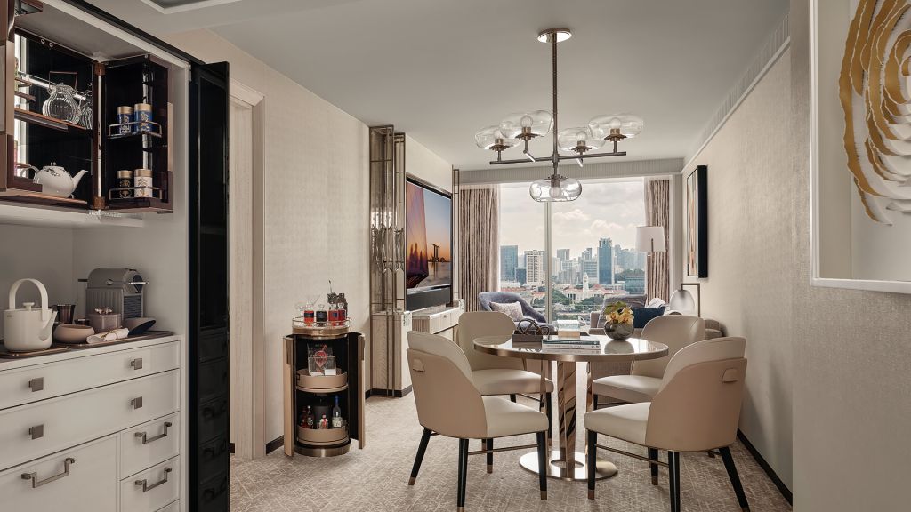 Come home to a sophisticated urban sanctuary. Host intimate dinners at the 2-seater dining table, paired with artisanal tea, international snacks and an extensive selection of wine, beer and pre-mixed cocktails from the bespoke Armoire and cocktail trolley. Rejuvenate your senses in the spa-like bathroom, featuring a luxurious 2-person marble bathtub. Freshen up at the spacious separate vanities and get ready for any occasion with a walk-in wardrobe and dedicated dressing table. Exclusive Privileges: (1) *Complimentary daily breakfast buffet at The Club or RISE Restaurant or breakfast set menu at Spago Bar & Lounge (2) *Complimentary Afternoon Tea at RISE Restaurant (3) *Complimentary Aperitif Hour at selected bars and restaurants (4) Complimentary 1-way arrival limousine transfer *Included for adults only; additional charges applicable for children aged 6 to 12 years old.