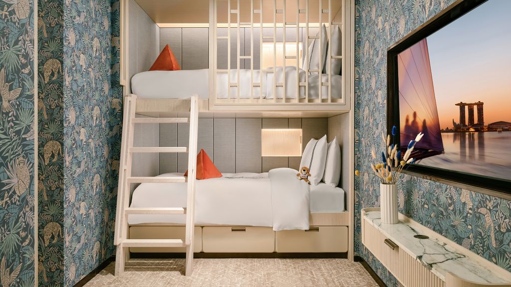Designed with the whole family’s needs and wants in mind, the Sands Family Suite makes travelling with your little ones a breeze. Whip up meals in the spacious kitchenette, complete with a child-friendly table and flatware. Explore Singapore with our exclusively curated Adventure Pack featuring Rori, a brave little plush lion. Features king bed, two double queen and bunk bed and kid-friendly amenities. Exclusive privileges: (1) Complimentary daily breakfast buffet at RISE Restaurant or breakfast set menu at Spago Bar & Lounge (2) Unlimited access to ArtScience Museum, Digital Light Canvas and Sampan Rides (3) Rori adventure pack for kids (4) Complimentary 1-way limousine transfer