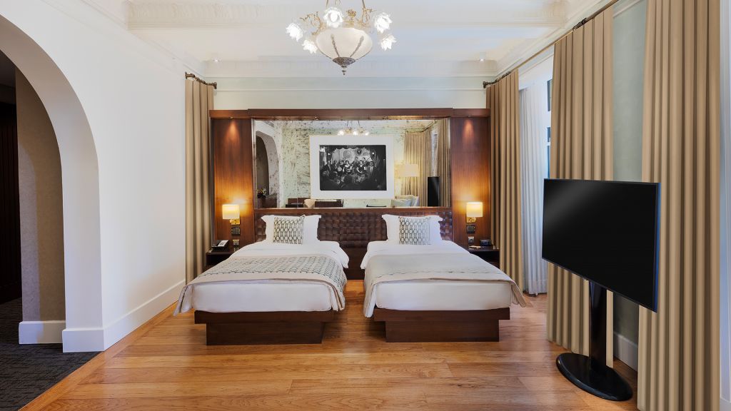 Revel in luxurious amenities in this 110-square-meter suite, such as an oversized king bed, work desk, separate living and dining areas, minibar, and a rooftop terrace. In the Türkiye’s bath, enjoy the steam room, deep soaking tub, and Dornbracht rainfall shower. Admire city views through the floor-to-ceiling windows. This is a premium suite. See World of Hyatt program terms for upgrade eligibility.