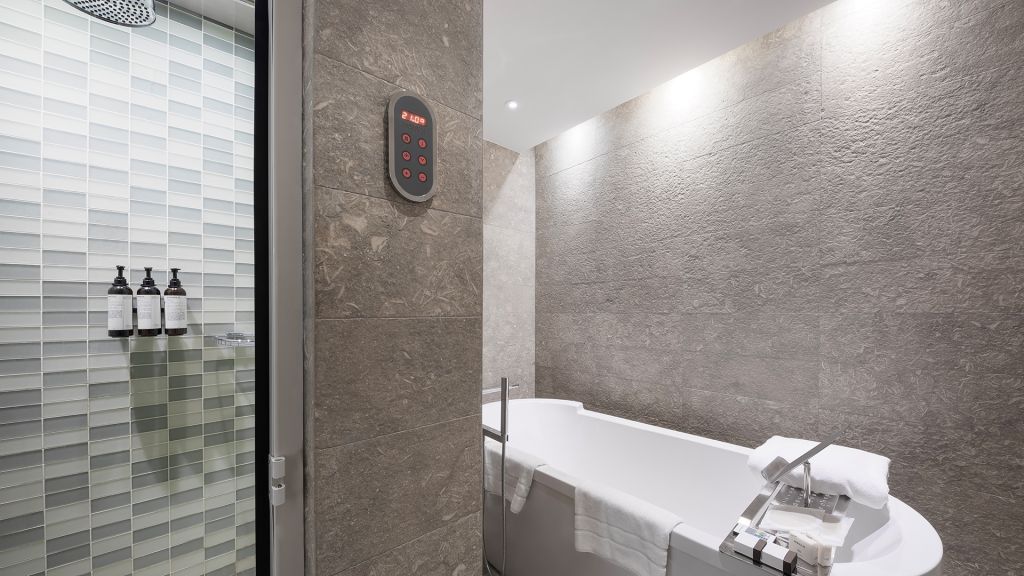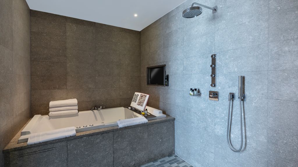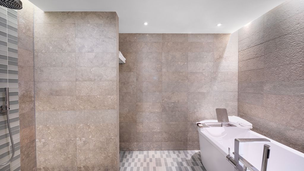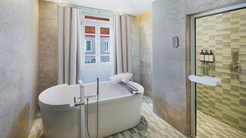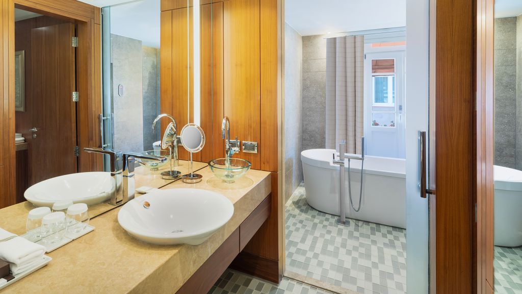 Unwind in 51 square meters of space in this stylish suite featuring a king bed, work desk, minibar, separate living area, and limestone bathroom with deep soaking tub and a walk-in shower. This is a standard suite.