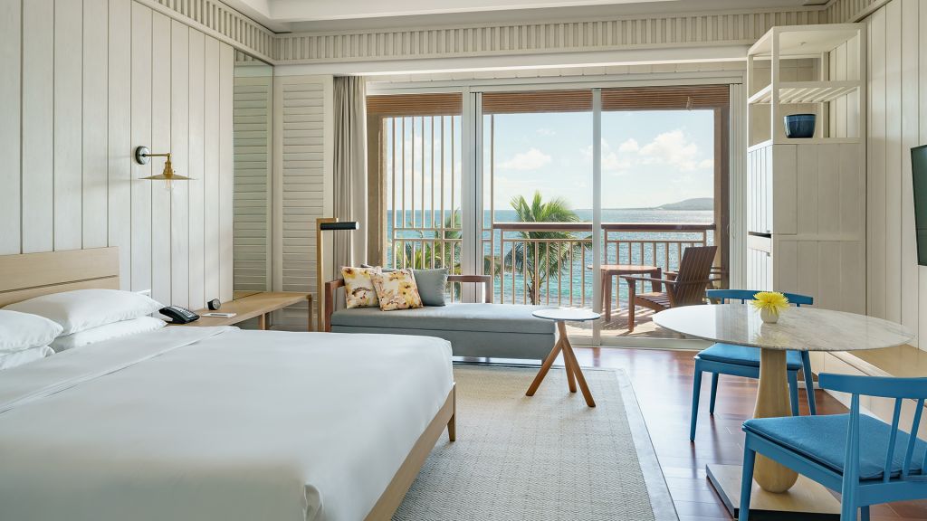 Relax in 527 square feet, with one king bed, a spa-inspired bath with deep soaking tub, a private terrace, and plentiful seaside light streaming through your floor-to-ceiling windows.