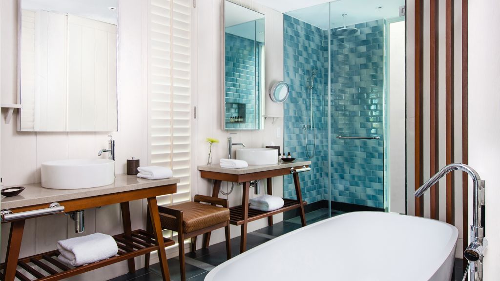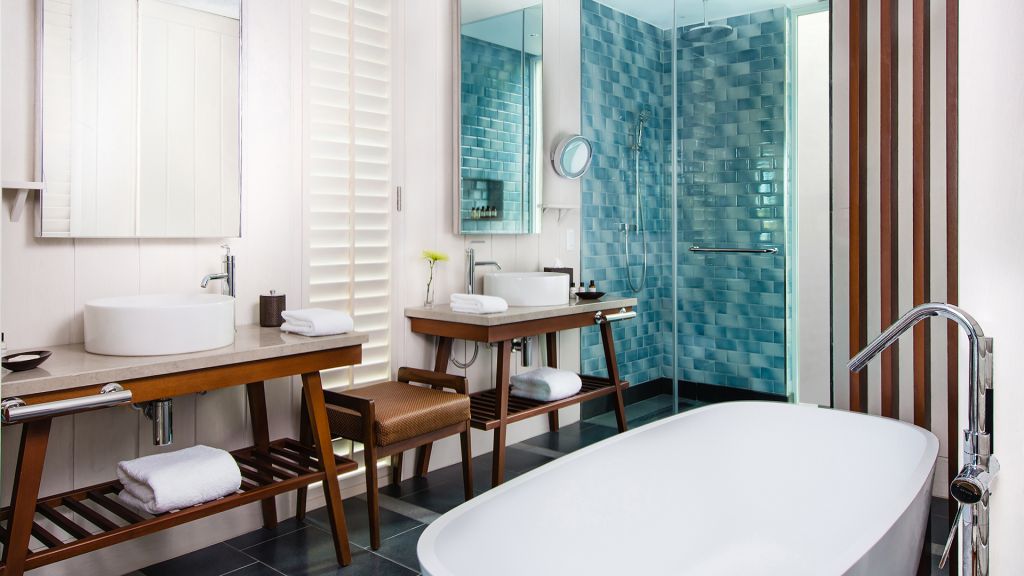 Settle into 527 square feet, with two queen beds, a sitting area, a spa-inspired bath that includes a deep soaking tub, and a private terrace with views of Banana Bay and Straits of Nevis.