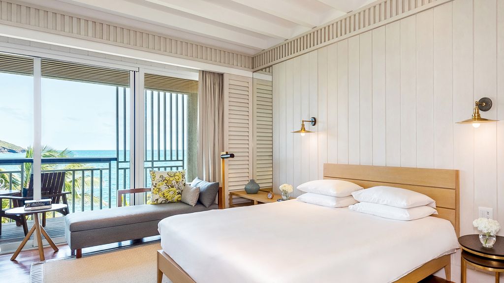 Luxuriate in 527 square feet, with one king bed, a spa-inspired bath with deep soaking tub, a sitting area, and a private terrace giving you views of Banana Bay and Straits of Nevis.