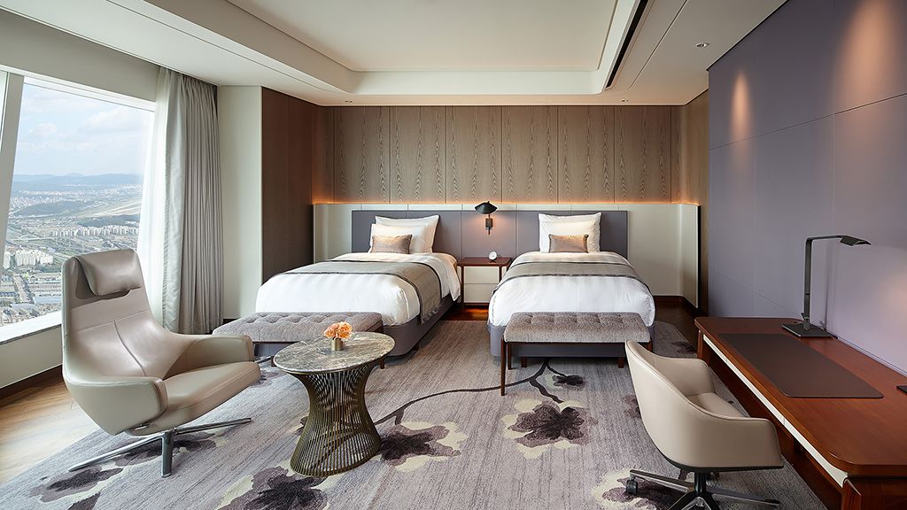2 Single Bed, 59-73SQM, City view, Guest lounge access, Floor 87-97. Complimentary ironing and shoe shine service.