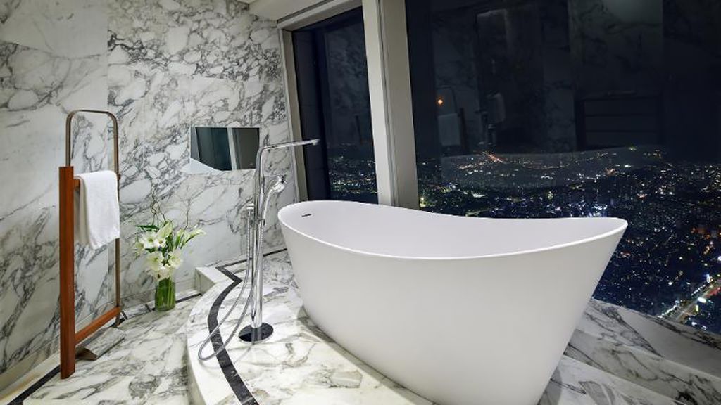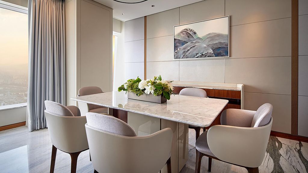 1 King, 59-73SQM, City view, Floor 87-101, Guest lounge access. Illy coffee machine. Butler box for pressing of laundry, shoe shining. Bathroom with separated shower booth and bathtub. Luxury Diptyque essentials as bath amenities.