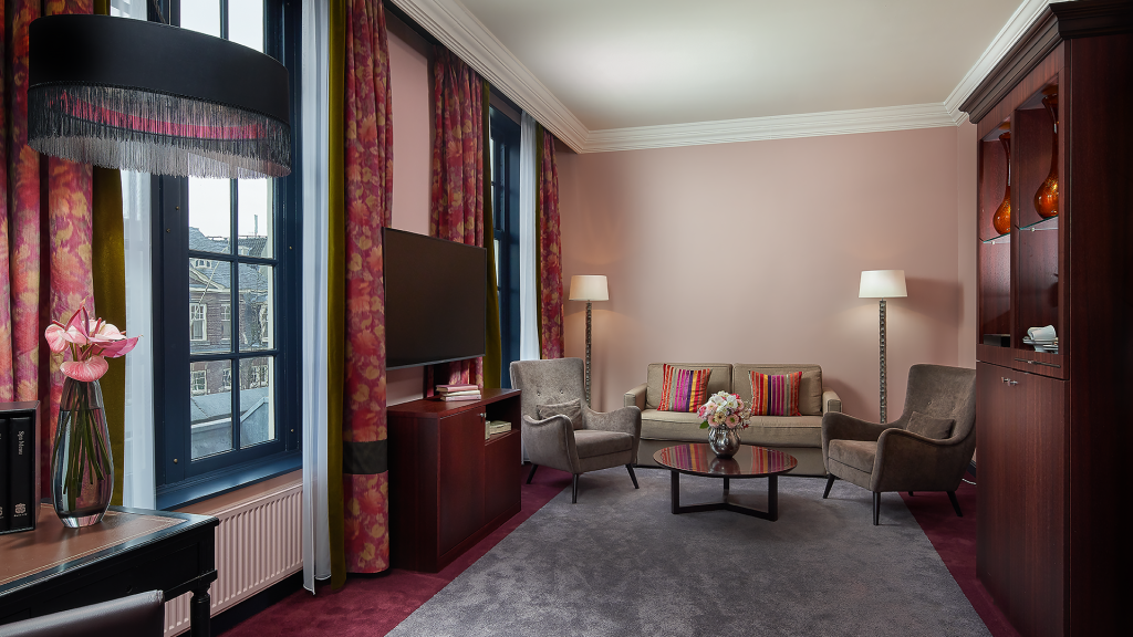 Gorgeous suite with 1 King bed, separate living room, butler service and garden or courtyard views.