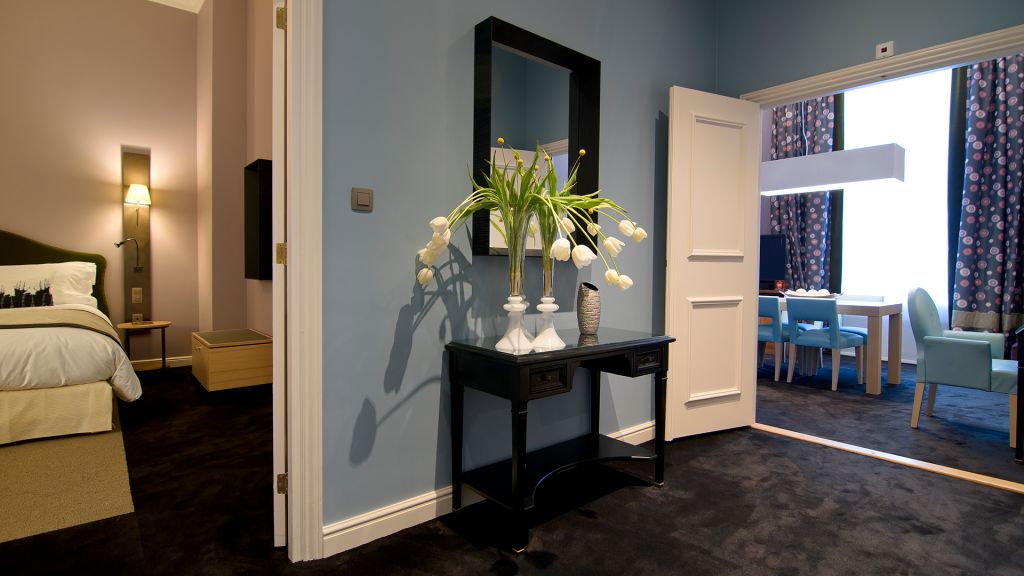 Spacious suite with two bedrooms, separate living room and dining room, butler service and canal view.