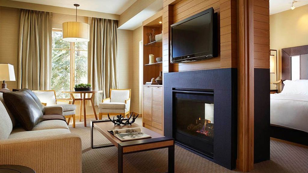 Studio residences are approximately 375 square feet -One king size bed -Efficiency kitchen with 2 burner stove top, microwave (no oven) and mini refrigerator as well as selected tableware, glassware, flatware and cooking tools -One spacious bathroom, some with deep soaking tub (upon request only) -Small sitting area in room with gas fireplace -Maximum occupancy of 2 including children -Rollaways not permitted in this room type -Connecting rooms not offered