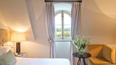 Suite overlooking the park of Chateau de Versailles and sitting area.
